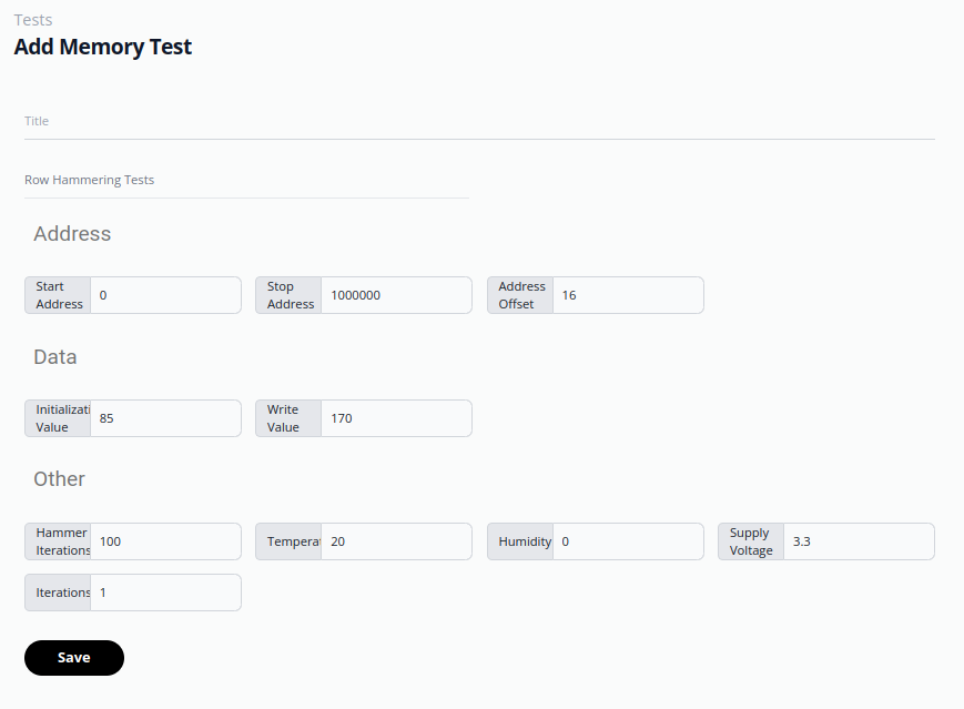 To introduce new test templates, a “templates” folder must be added within the designated folder of the respective test category. Inside this folder, a “tests” directory is created. For instance, in the case of row-hammering tests, the configuration is defined as follows: