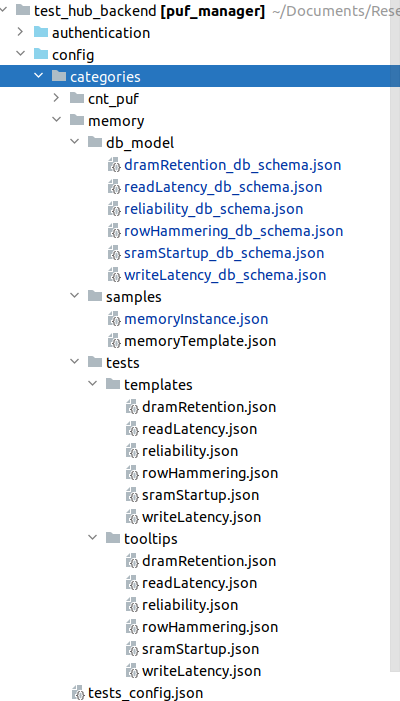 Within this folder a tests_config.json defines the different test categories: