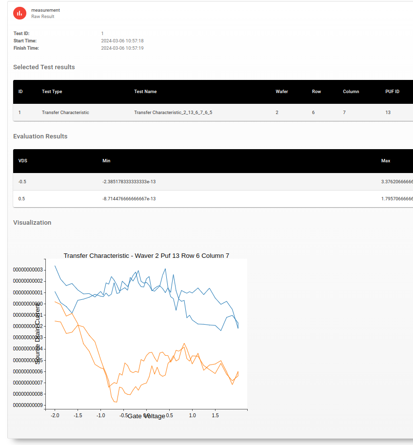 It is also possible to evaluate wafers, such as those used for carbon nanotube field-effect transistors. To facilitate this, a dedicated wafer visualization component was developed.